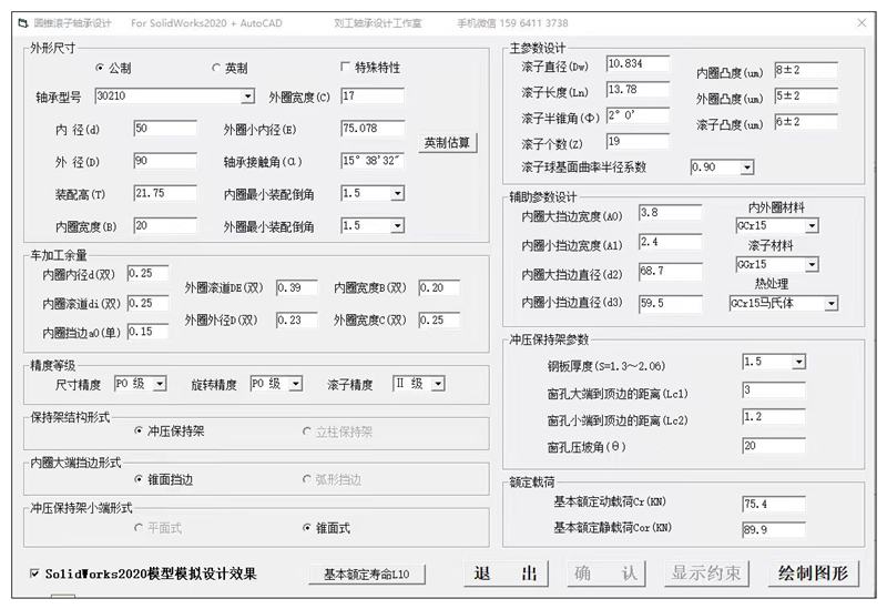 AutoCAD+SolidWorks軸承參數(shù)化設(shè)計(jì)軟件的開發(fā)定制的內(nèi)容,軟件自動(dòng)出AutoCAD軸承全套可供生產(chǎn)加工用的圖紙,同時(shí)出SolidWorks三維模型直觀查看設(shè)計(jì)效果。